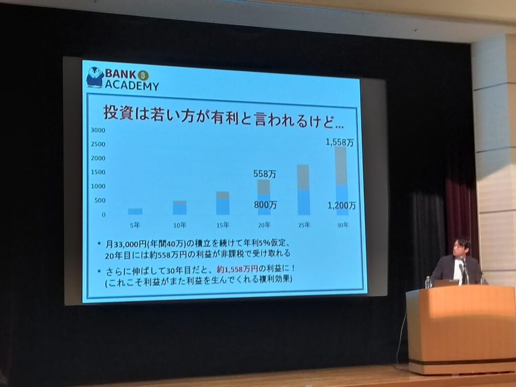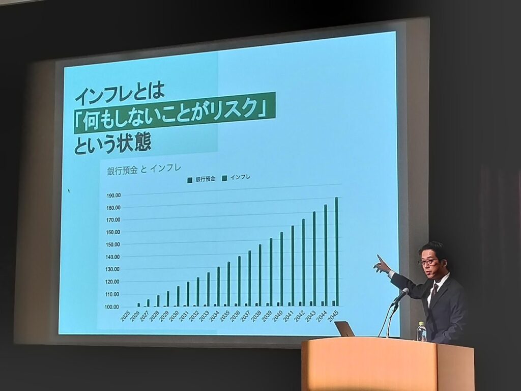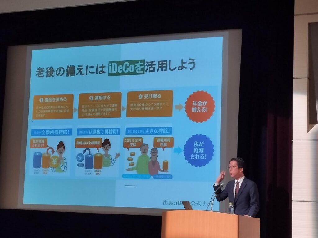 NISAの仕組みや生活防衛資金を確実に用意する重要性など、基本的なお金の知識からセミナーがスタート。